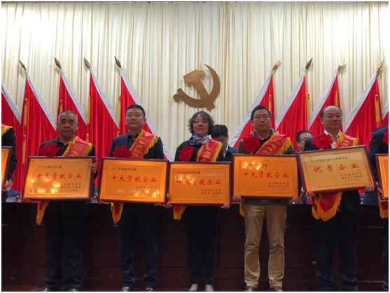 2018年4月13日,“肥東縣經(jīng)濟(jì)發(fā)展大會(huì)”在縣政府大會(huì)堂召開,我司總經(jīng)理柯幼巍受邀參加本次大會(huì),并登臺(tái)領(lǐng)取由縣黨委書記孫良鴻、縣長姚飛親自頒發(fā)的“2017年度經(jīng)濟(jì)發(fā)展十大貢獻(xiàn)企業(yè)”、“2017年度現(xiàn)代服務(wù)業(yè)和建筑業(yè)優(yōu)秀企業(yè)”榮譽(yù)稱號(hào)。