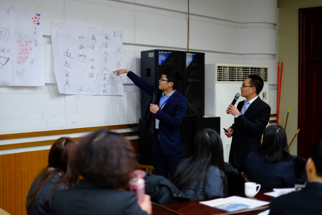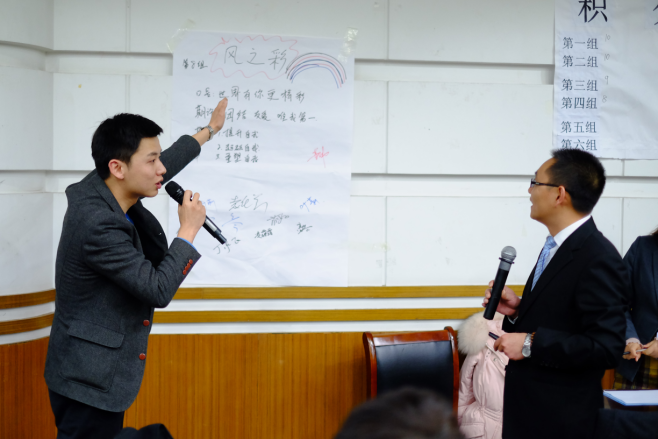 郭老師首先從熱身分組團(tuán)建開(kāi)始,帶動(dòng)所有學(xué)員參與到課程中來(lái),提升參與度,提高程堂互動(dòng)效率。
