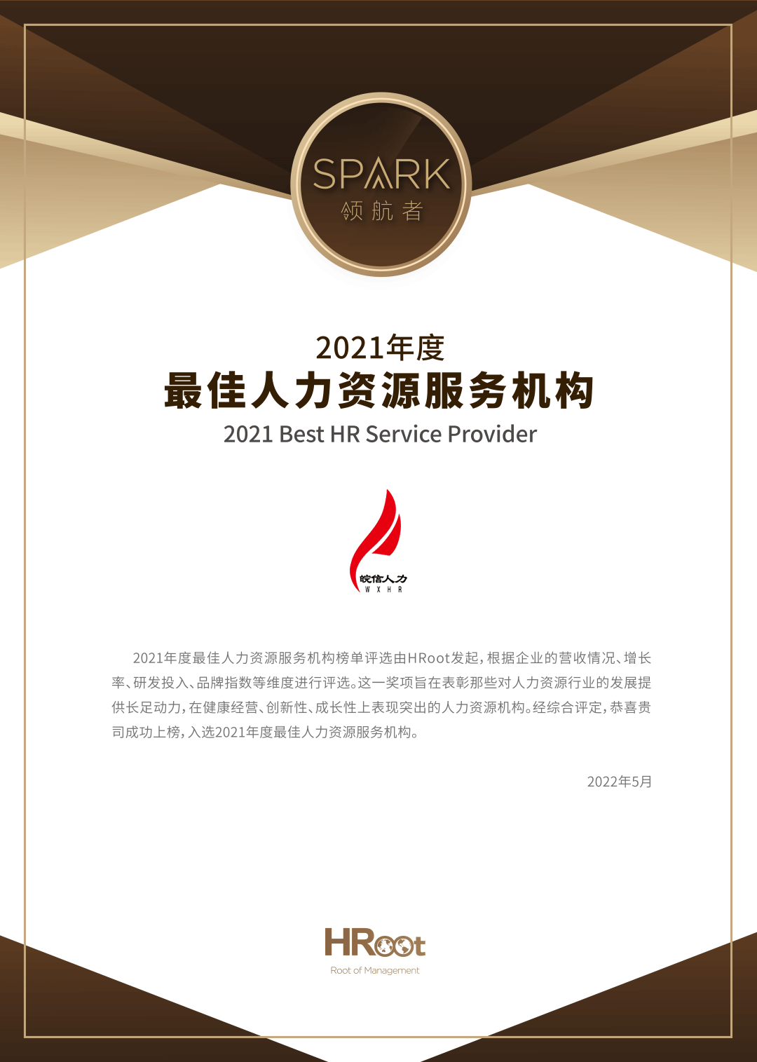 皖信人力榮獲HRoot“2021年度最佳人力資源服務(wù)機(jī)構(gòu)”榮譽(yù)稱號(hào)
