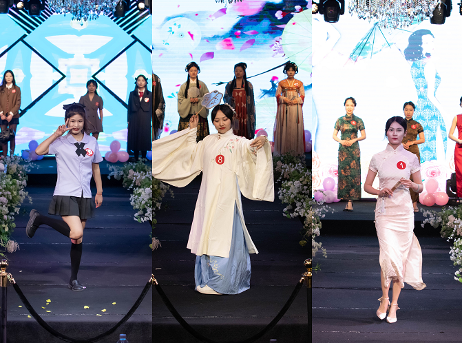 本次服裝秀共設(shè)置旗袍組、漢服組、制服洛麗塔組、親子組和線上視頻組五個組別。參賽選手身著各式服裝,無論是旗袍組的端莊、漢服的古典、制服組洛麗塔組的甜酷還是親子組的可愛,都在通過各種造型展示自己的魅力與風(fēng)采。親子組的小朋友們更是萌翻全場,贏得了現(xiàn)場頻頻喝彩聲。
