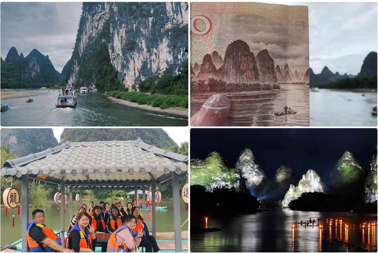 第三天到第五天,小伙伴們陸續(xù)打卡了漓江、銀子巖、遇龍河、象鼻山等風(fēng)景點(diǎn),大家一邊談笑風(fēng)生,愜意地享受和同事、家人共處的悠閑時(shí)光;一邊不禁地感嘆祖國山河遼闊壯美。晚上,皖信旅游團(tuán)觀看了“印象劉三姐”山水實(shí)景演出,感受經(jīng)典山歌與本地民族風(fēng)情的融合,在劉三姐身上大家感悟到了女性的勇敢、正直、互幫互助的美好品質(zhì)。