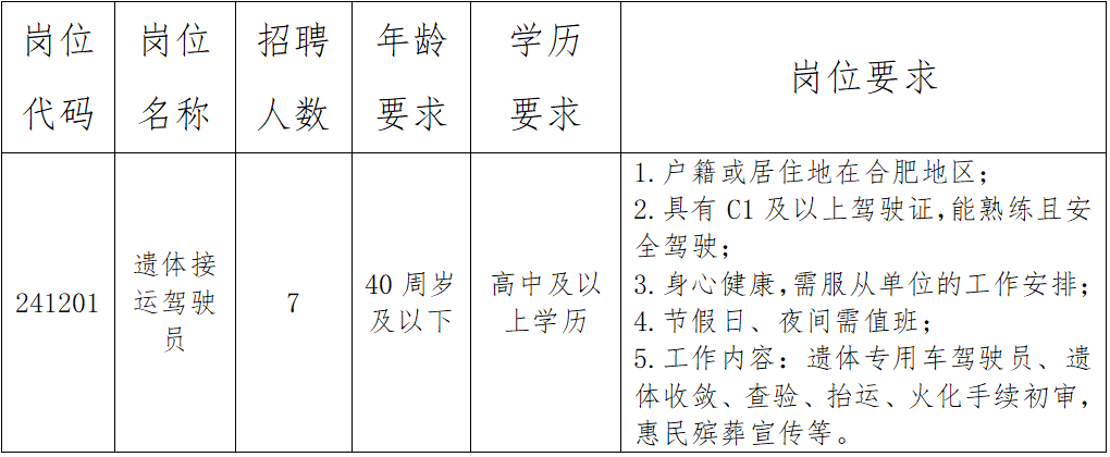 2024年肥西縣民政局殯葬管理中心公開(kāi)招聘遺體接運(yùn)駕駛員公告
