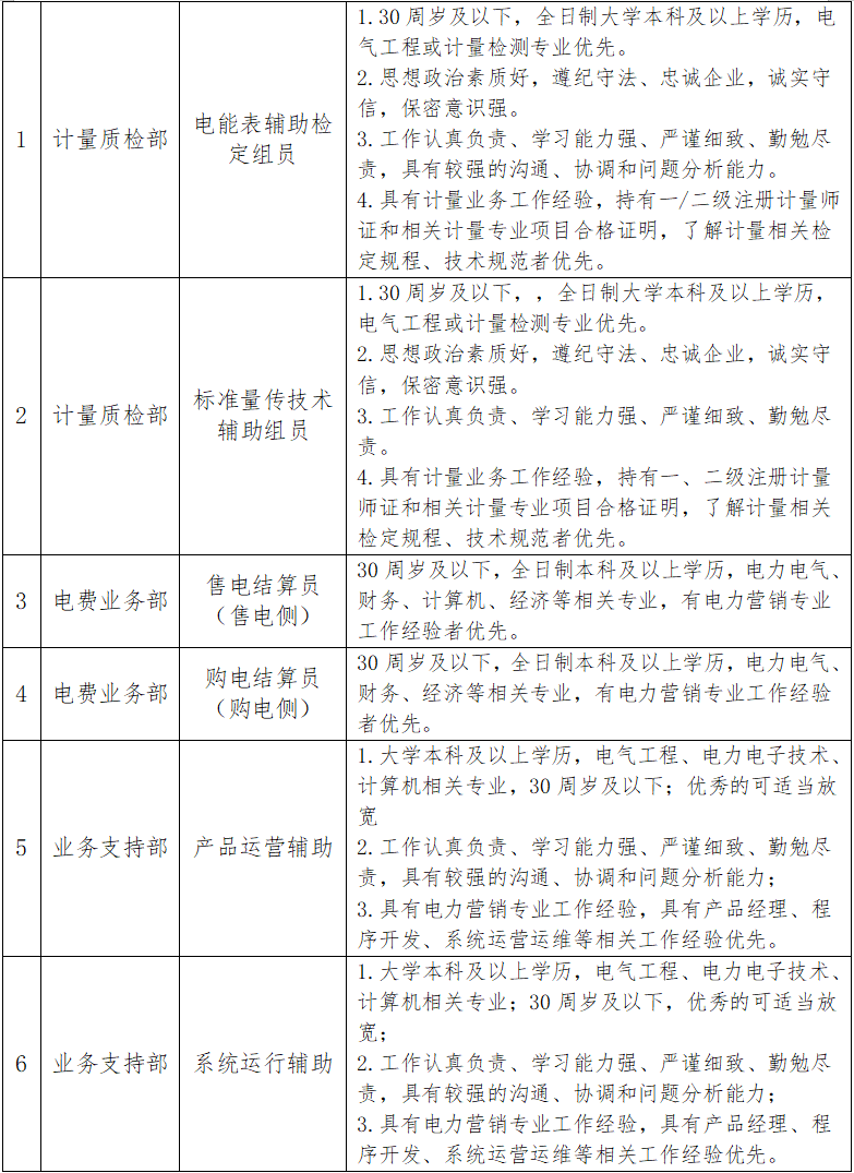 根據(jù)業(yè)務(wù)發(fā)展需要,安徽皖信人力資源管理有限公司(以下簡(jiǎn)稱“公司”)2025年擬招聘電能表輔助檢定組員、售電結(jié)算員(售電側(cè))、產(chǎn)品運(yùn)營(yíng)輔助若干名,派駐某電力國(guó)企工作?,F(xiàn)將有關(guān)事項(xiàng)公告如下。