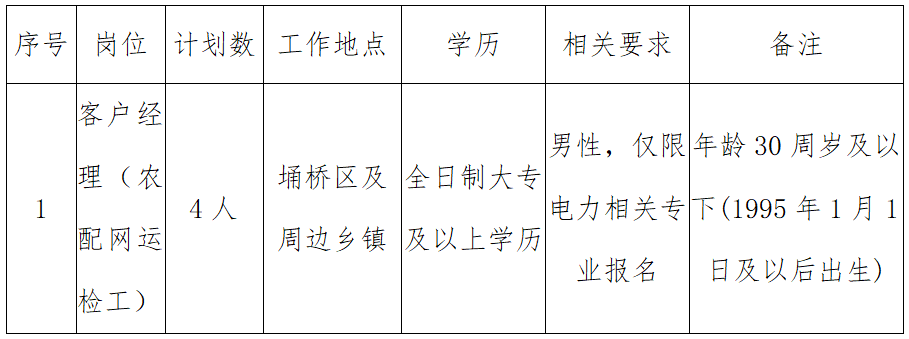 (一)招聘崗位:客戶經(jīng)理(農(nóng)配網(wǎng)運(yùn)檢工)