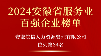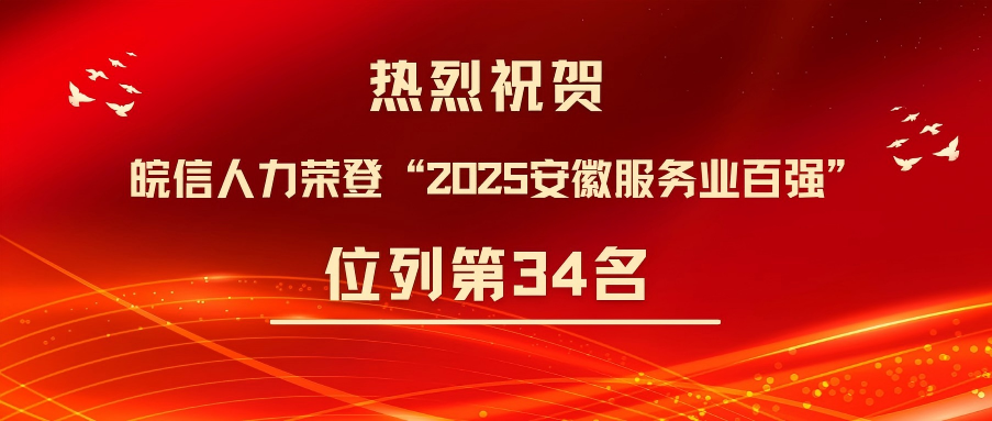 皖信人力榮登2025安徽服務(wù)業(yè)百強第34位,專業(yè)實力與服務(wù)貢獻獲權(quán)威認可!